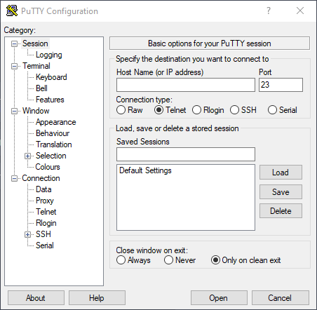 - Step 2: After you have installed “PuTTy” you have to connect your Computer / Laptop with your Enigma Device with a LAN Cable and your Enigma/VU Device with a Monitor or TV. To get a connection to your device, you will need to get the IP-address of your enigma/vu device and enter it into PuTTy as the Host Name. You will also need to select telnet.